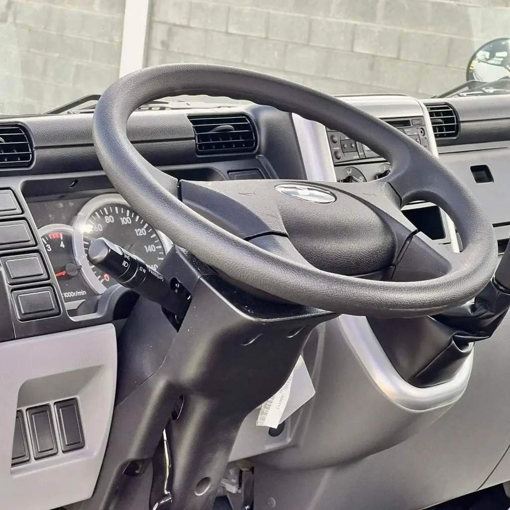 La cabina ofrece amplio espacio para las piernas, techo alto y amplio. La gama de ajustes ajustables, como asientos reclinables y volante telescópico e inclinable, permite al conductor encontrar fácilmente la posición más cómoda.